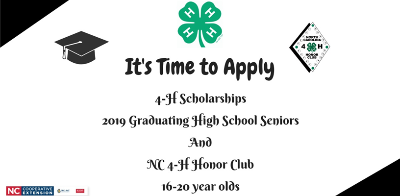 All high school seniors are encouraged to apply for North Carolina 4-H Scholarships. The final draft must be in the N.C. Cooperative Extension Center, Forsyth County Center on Monday, January 28th. Mrs. April and Mrs. Monique are happy to proof read rough drafts at any time prior to the deadline, so please reach out to them for guidance or call 336-703-2850.