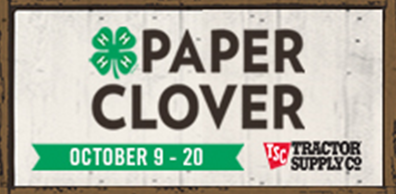October 9- October 20, 2019, Forsyth County Tractor Supply customers can participate in the 2019 Fall Paper Clover campaign by purchasing paper clovers for $1 or more at checkout. The funds raised will be awarded as scholarships to individual Forsyth County 4-H’ers wishing to attend 4-H camps and leadership conferences across the country. The number of scholarships distributed to youth following the fall campaign will be determined based on the total amount raised.