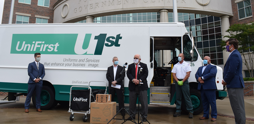 UniFirst donated 10,000 masks and hand sanitizer to Forsyth County Government’s Reopen Forsyth PPE Kit Program on June 17.