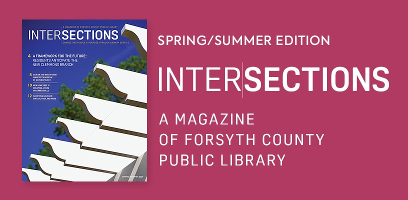 "Intersections" will be published three times a year and contains information about library programs, services and more that you can't get anywhere else. In this second issue learn about the new Clemmons Branch Library, as well as the ways in which services and people are connecting across Forsyth County.