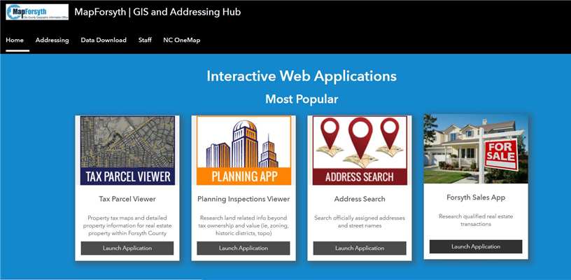 “As we create new web applications and upload new data, it gets updated automatically on the site.” said Forsyth County Geographic Information Officer Joseph Sloop. “It really streamlines the process.”