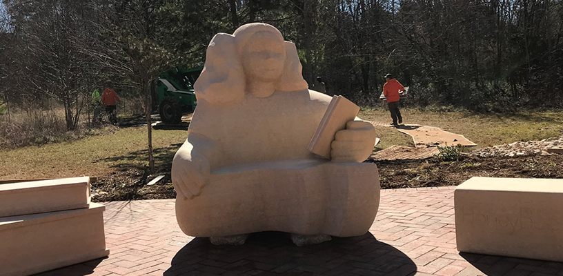 General Services staff spent the morning of March 4 carefully installing the new Honey Bee Curiosity sculpture at the Forsyth County Public Library's Paddison Memorial Branch. The three piece statue by Madeline Weiner was commissioned by the Winston-Salem/Forsyth County Public Art Commission. Due to COVID-19, there was no in-person formal unveiling ceremony for the statue, but this video will let you see the installation process and hear remarks from those involved.