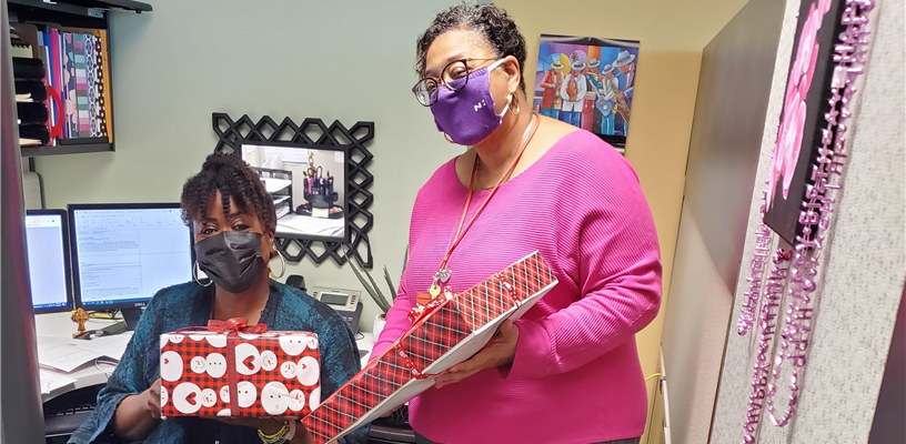 Forsyth County Department of Social Services’ Adult Services Division used a virtual platform to collect gifts for a list of 55 of its most vulnerable clients.