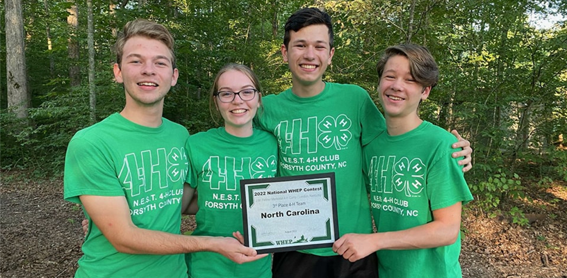 Congratulations to our 4-H Wildlife Habitat Education Program or WHEP team that placed 3rd in the National 4-H contest the first of August at the J.M. Feltner 4-H Camp near London Kentucky. Participants competed in multiple hands-on events related to wildlife and habitat conservation. Students tested their wildlife identification and general knowledge skills and evaluated and provided management recommendations for an eastern deciduous hardwood forest to improve habitat for various wildlife species. Students also worked as a team to write and orally defend a wildlife habitat management plan.