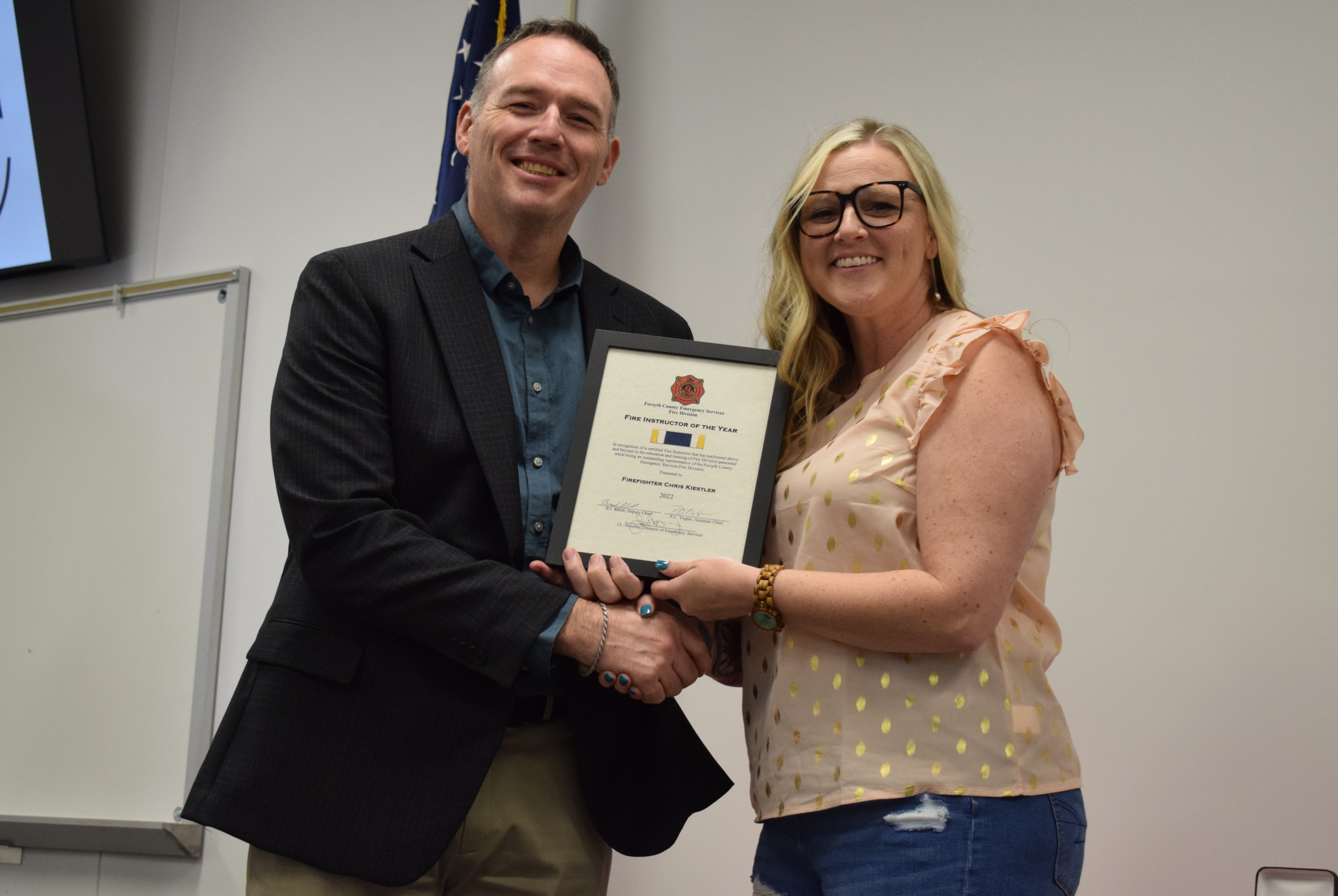 Marie Kiestler accepted Life Saving and Fire Instructor of the Year awards for her husband, Chris Kiestler, who couldn’t be there because he was out responding to a call.
