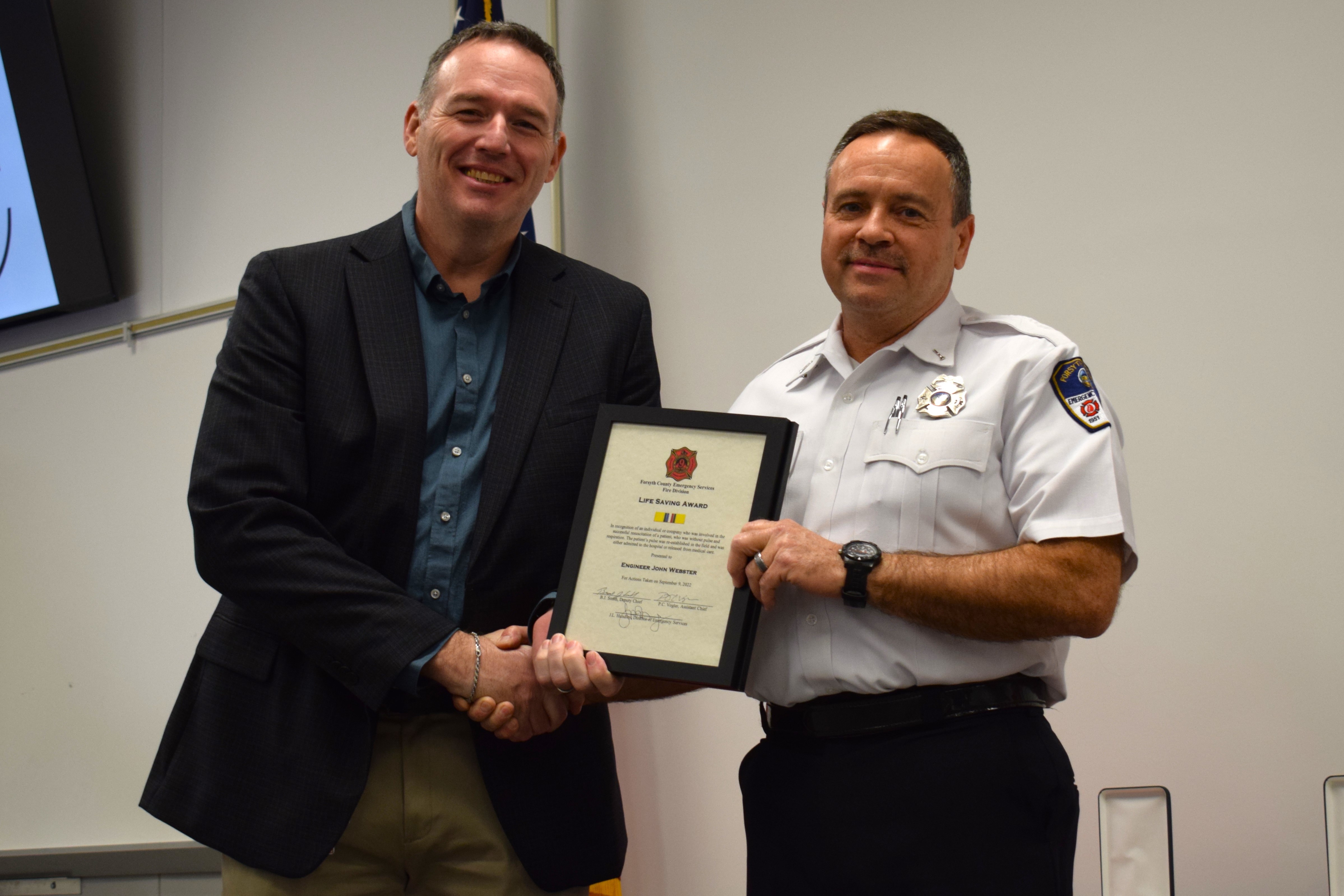 Engineer Mike Blakley receives a Fire Officer of the Year
