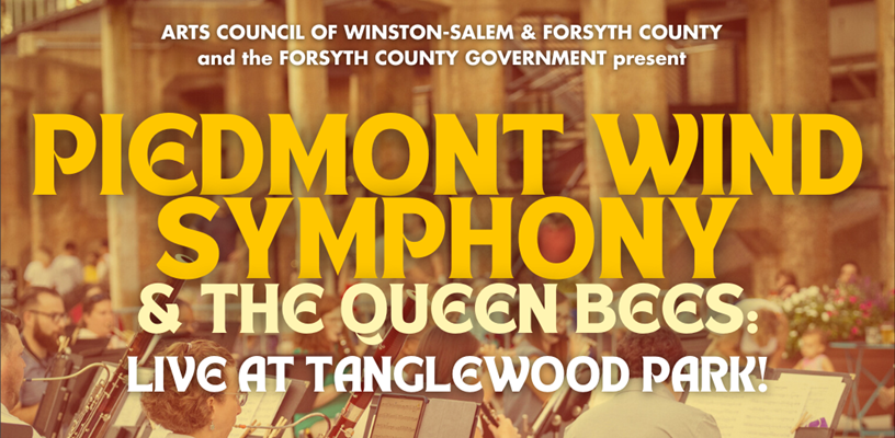 Arts Council kicks off their 9th Annual Parks Concert Series with Piedmont Wind Symphony and The Queen Bees: Live at Tanglewood Park on Sunday, May 12 from 2-5pm. The concert series, presented in partnership with Forsyth County Government, provides free, family-friendly concerts showcasing local and national musicians in beautiful outdoor venues.