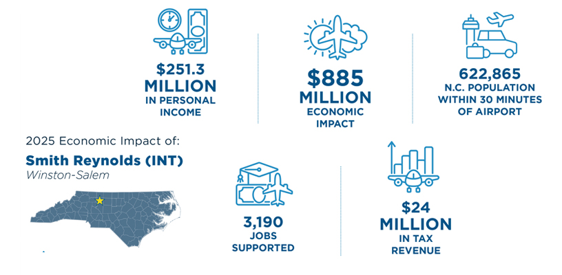 Smith Reynolds Airport contributes $885 million, 3,190 jobs to local economy