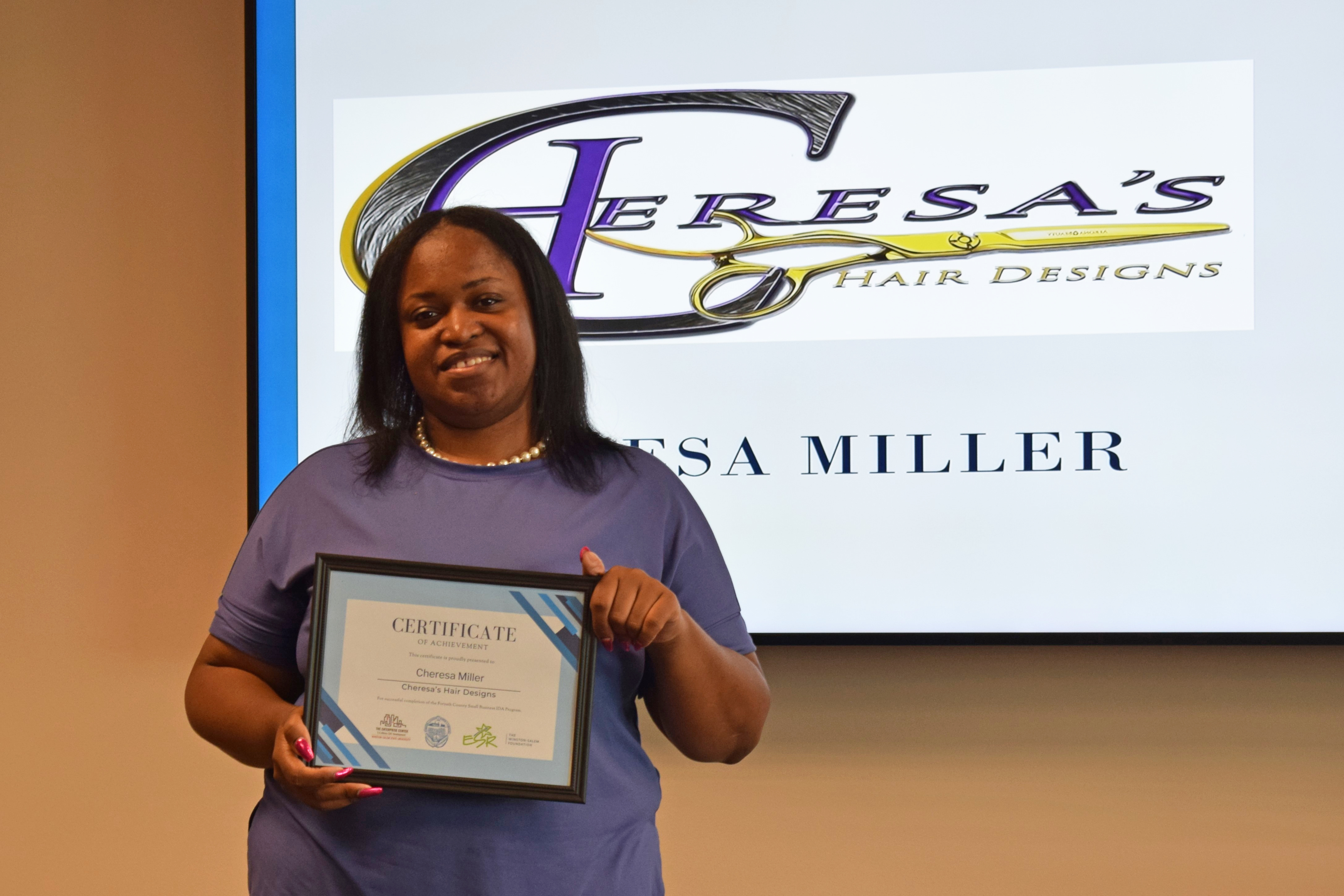 Cheresa Miller, Cheresa's Hair Design – A salon, established in 2018, specializing in natural hair care, braids, locs and other beauty services, including lashes wax services and more. IDA funding will be used for marketing efforts, new shop equipment and new technology