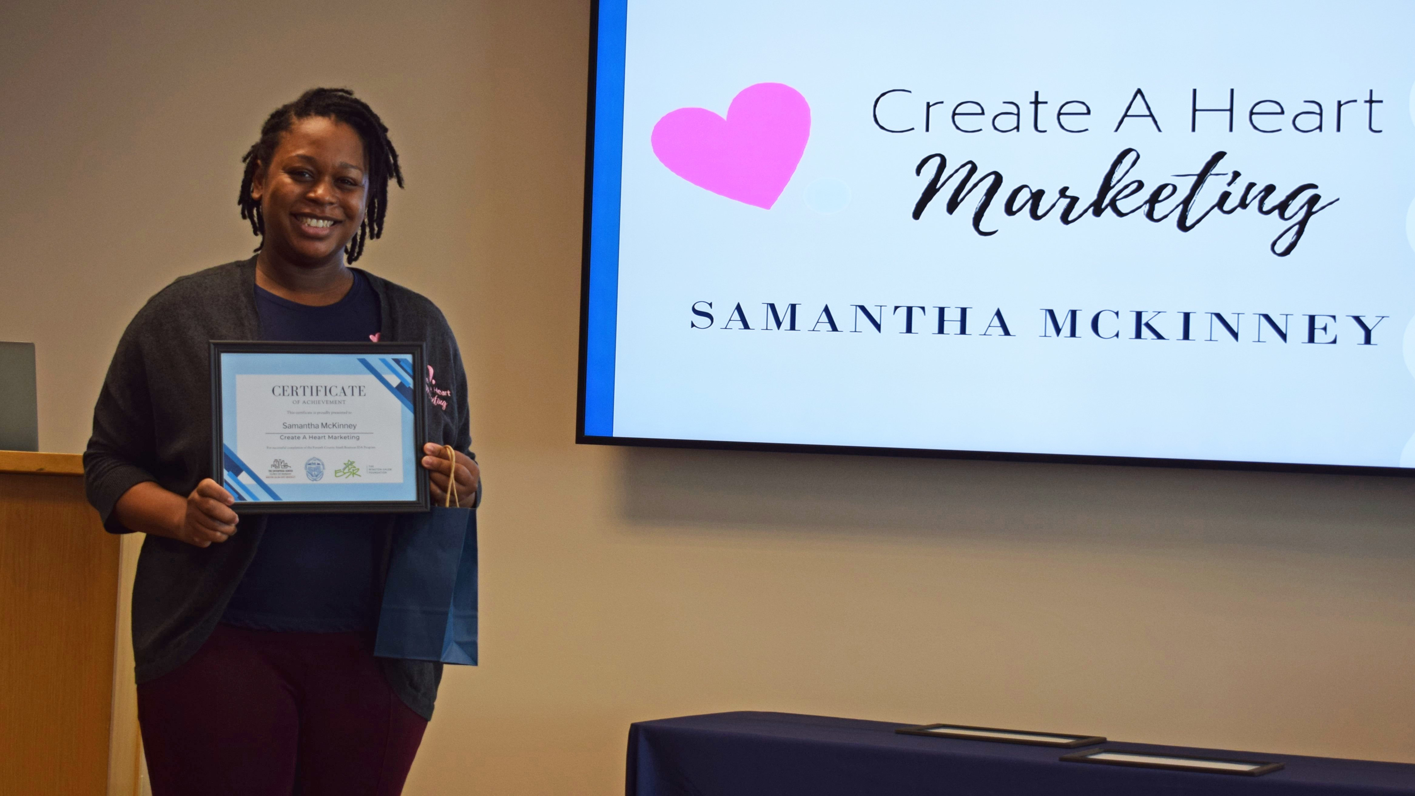 Samantha McKinney, Create A Heart Marketing – A boutique digital marketing firm that specializes in social media management, email marketing and paid ads management. IDA funding will be used for new marketing materials, a strategic Google Ad campaign, and a business vehicle to support travel to client sites and trade shows.