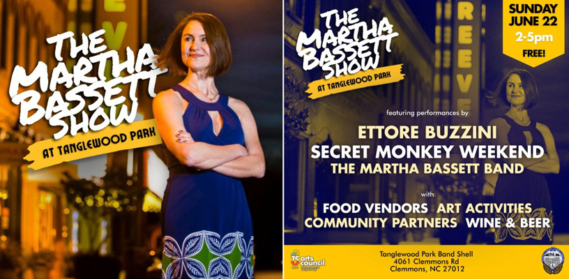 Get ready to join us for our last date for the Arts Council Concert series at Tanglewood Park this year! Come bring a lawn chair or a blanket and enjoy a summer afternoon full of music with us and the Martha Bassett Show LIVE at Tanglewood Park this Sunday, June 22, from 2 - 5 p.m.! This concert is free to attend and will feature special guests - Ettore Buzzini and Secret Monkey Weekend. Visit the Arts Council website at https://www.intothearts.org/campus-events/martha-bassett for more information. We'll see you there!